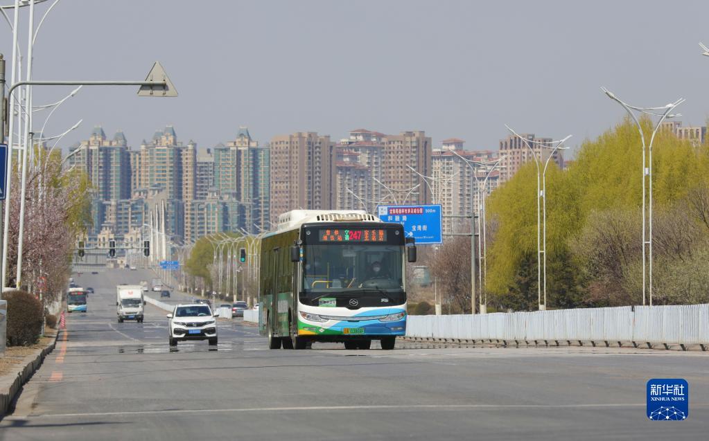 4月13日,在沈陽市和平區,恢復運行的公交車在道路上行駛。新華社記者 楊青 攝
