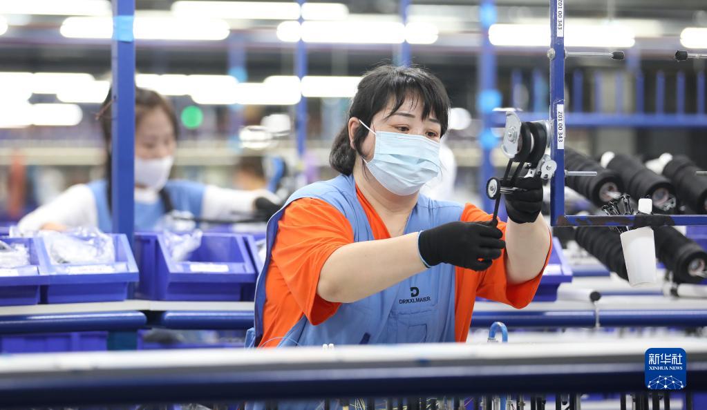 4月19日,德科斯米爾(鞍山)線束系統有限公司的工人在車間內生產汽車線束。新華社記者 姚劍鋒 攝