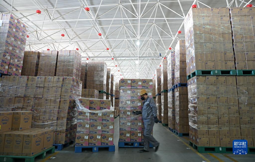 4月19日,在維達紙業(遼寧)有限公司的倉庫里,工作人員在運輸產品。新華社記者 姚劍鋒 攝