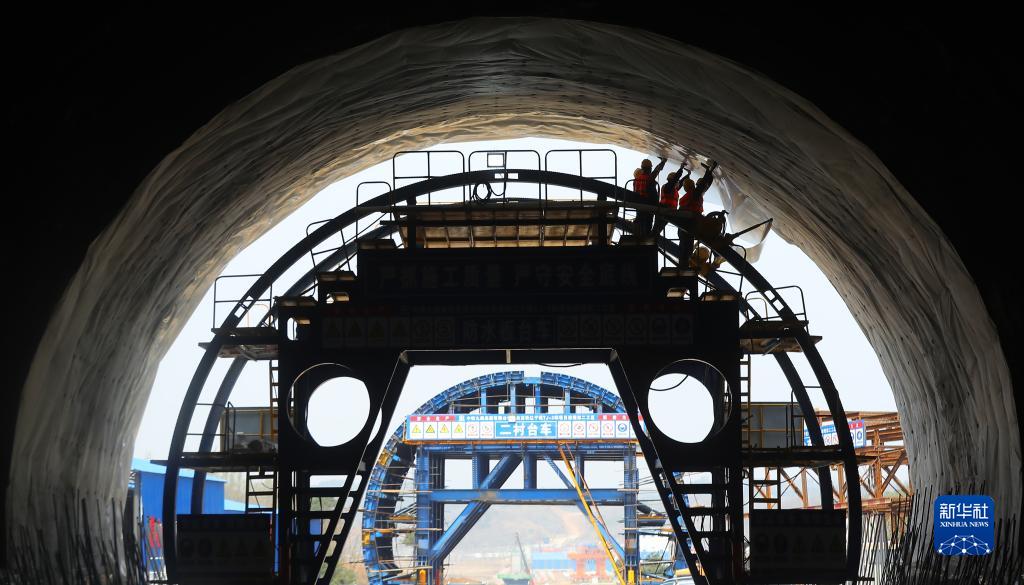 4月20日,中鐵九局工程技術人員在蘭山隧道內施工。新華社記者 楊青 攝