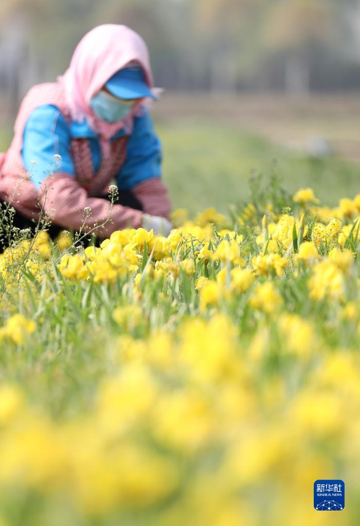 4月21日,花農在八角臺街道雅化村花圃內進行田間管理。新華社記者 姚劍鋒 攝