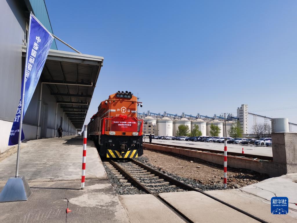 4月22日,遼寧首趟中老鐵路國際貨運列車在中國鐵路沈陽局虎石臺車站誠通實業投資有限公司專用線等待發車。(新華社記者楊青攝)