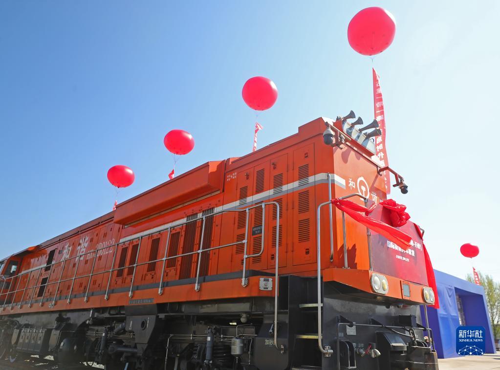 即將發車的遼寧首趟中老鐵路國際貨運列車(4月22日攝)。新華社記者 楊青 攝