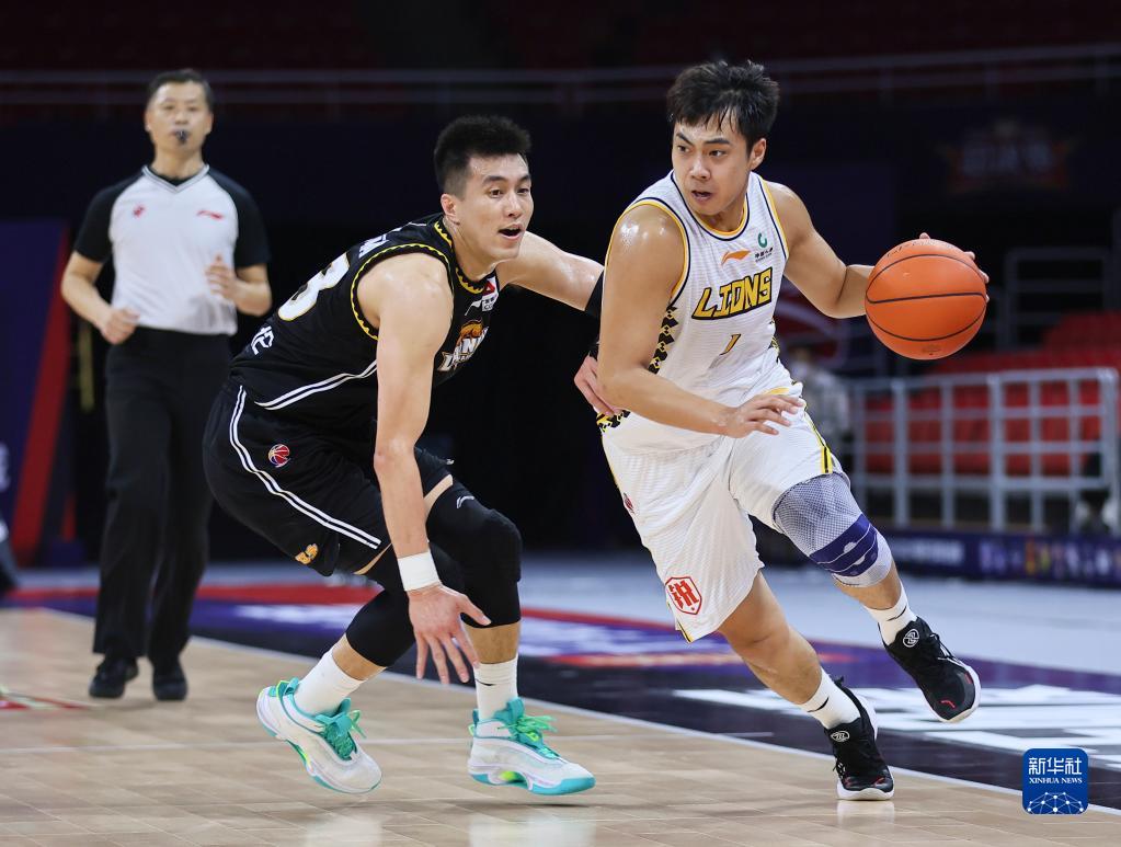 4月24日,浙江廣廈控股隊球員許可(右)在比賽中帶球突破。新華社發