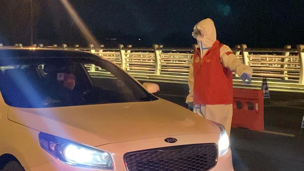 到了深夜,撫順市的室外氣溫仍然較低,志愿者們仍然堅守崗位,沒有絲毫懈怠,逐人逐車查驗行程碼及核酸報告。