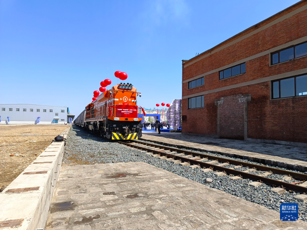 4月22日,遼寧首趟中老鐵路國際貨運列車從沈陽虎石臺車站誠通實業投資有限公司專用線駛出。新華社記者 丁非白 攝
