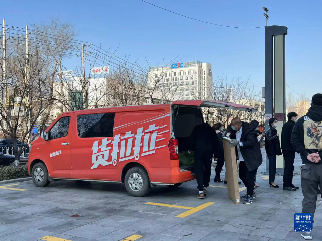 在沈陽市渾南區福融天地廣場,貨拉拉司機正在卸貨。受訪者供圖