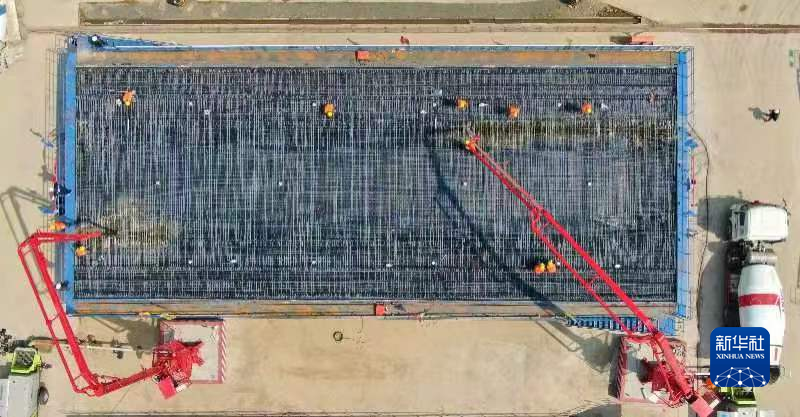 4月20日,在中鐵九局沈白高鐵蘭山制梁場內,中鐵九局工程技術人員在澆筑箱梁。新華社記者 楊青 攝