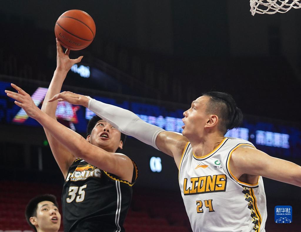 4月26日,浙江廣廈控股隊許鐘豪(右一)在比賽中防守遼寧本鋼隊球員朱榮振(右二)。新華社記者 萬象 攝