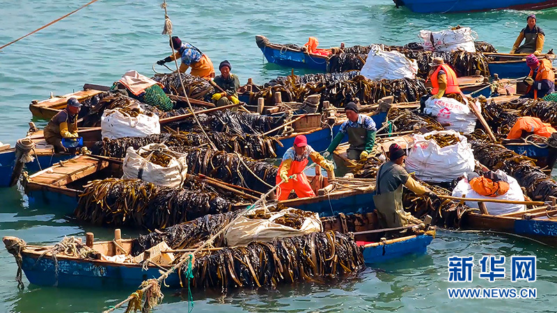 一船又一船的裙帶菜被運送上岸,加工后的成品將銷往海內外。