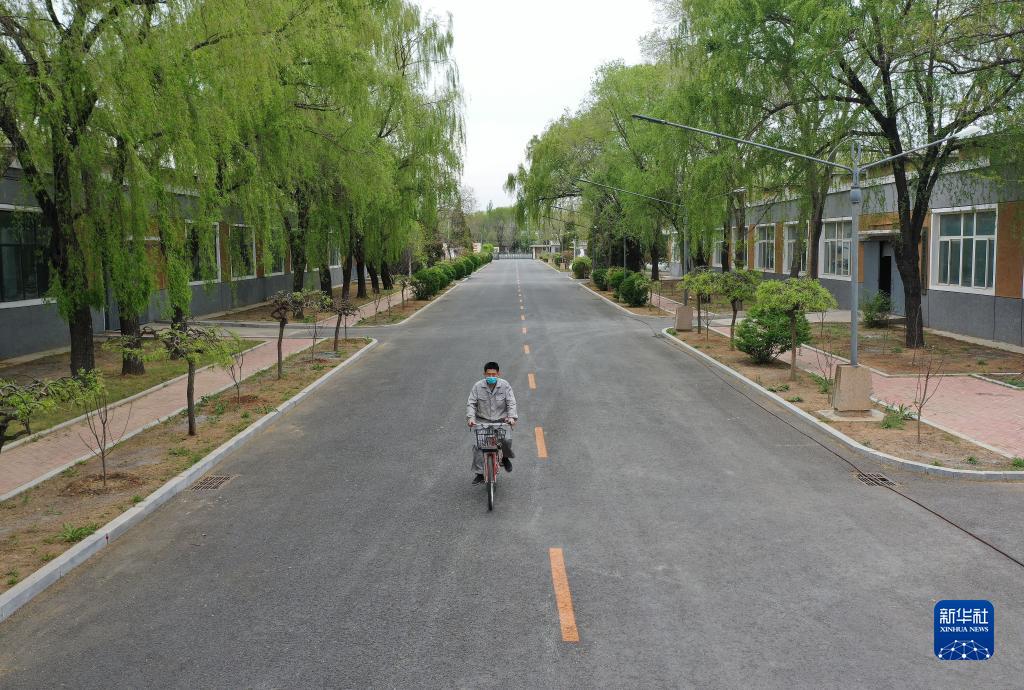 4月28日,劉玉磊騎行在廠區(無人機照片)。新華社記者 姚劍鋒 攝