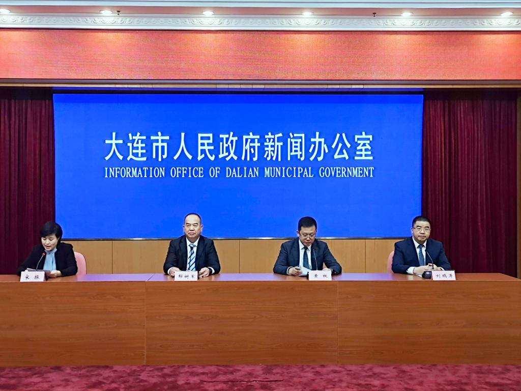 大連市醫療保障局局長邸樹軍(左二)在新聞發布會上介紹有關情況。(新華社記者張博群 攝)