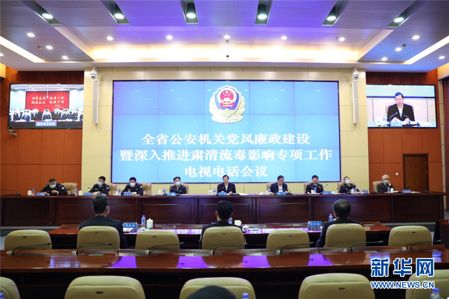 全省公安機關黨風廉政建設暨深入推進肅清流毒影響專項工作電視電話會議現場。新華網發(遼寧省公安廳 供圖)