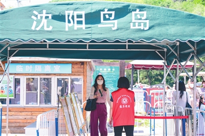 6月2日,沈陽鳥島工作人員檢查游客48小時核酸檢測陰性證明。張文魁攝