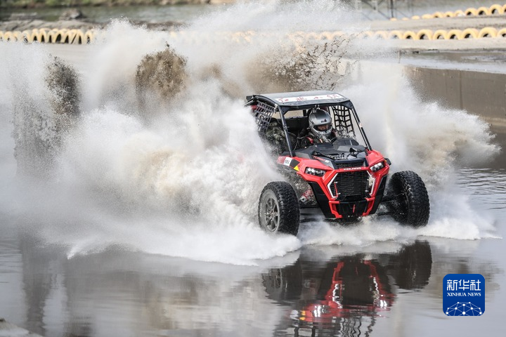 2019年6月17日,選手在遼寧省阜新市舉辦的越野錦標賽上賽車。新華社記者 潘昱龍 攝