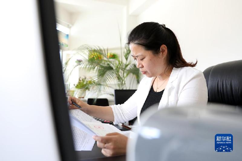 6月2日,牟蘋麗在幼兒園辦公室內工作。新華社記者 姚劍鋒 攝