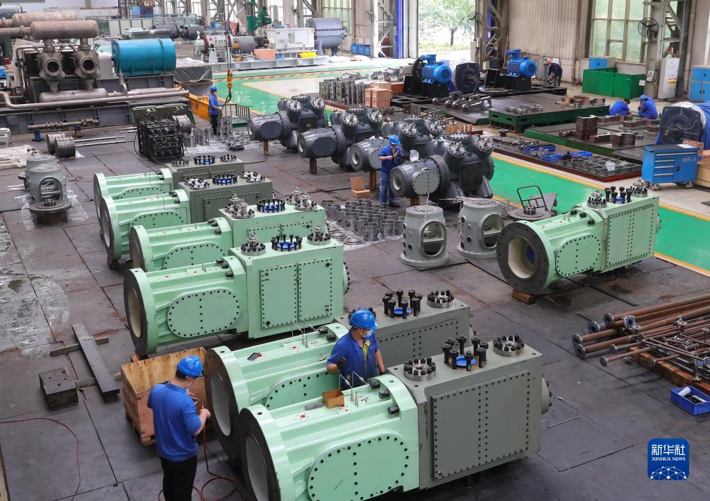 6月13日,在沈鼓集團,工人在總裝車間工作。新華社記者 楊青 攝