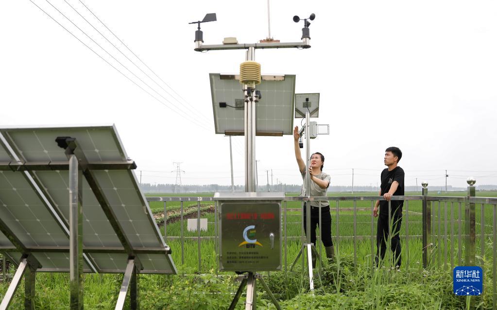 6月23日,高月(左)和同事在富家鎮四臺子村黑土地質量監測點查看觀測儀器工作情況。新華社記者 姚劍鋒 攝