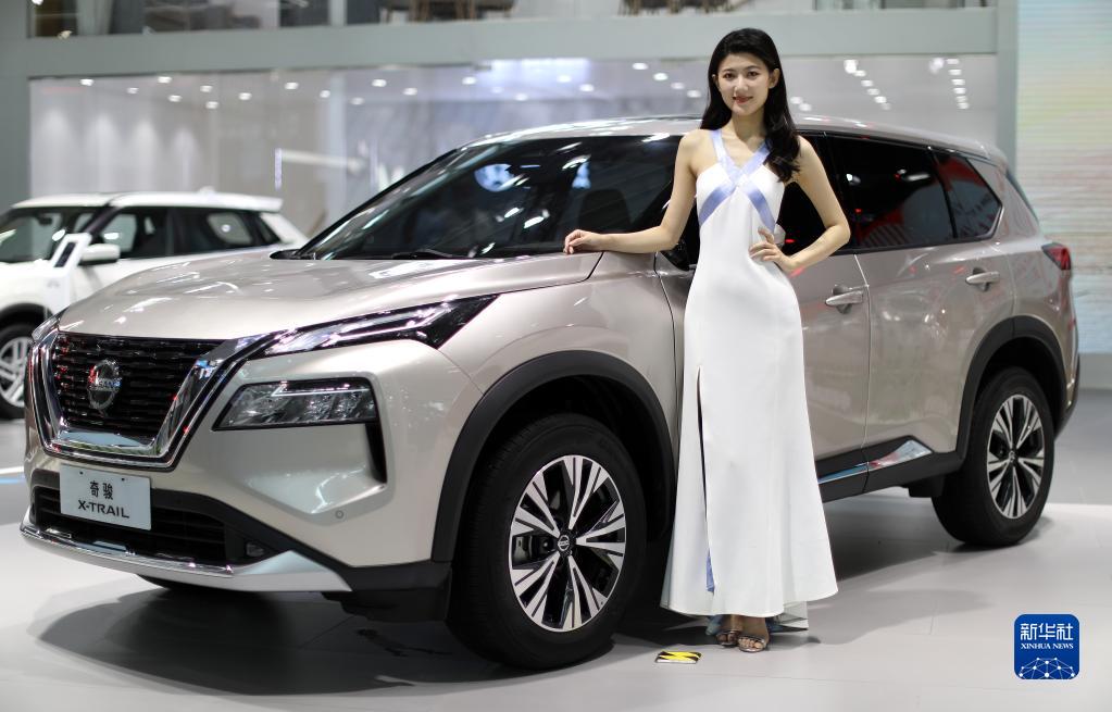 6月26日,一名汽車模特站在展車前。新華社記者 姚劍鋒 攝