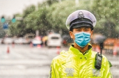 沈陽交警在橋梁、涵洞等易積水點位和路段部署警力,全力保障道路交通安全暢通有序。 本報見習記者 劉 桐 攝
