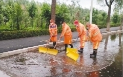 為確保城市街路排水暢通,沈陽環衛部門已組建3255人應急保障隊伍,配合防汛部門做好保障工作。本報見習記者 劉 桐 攝