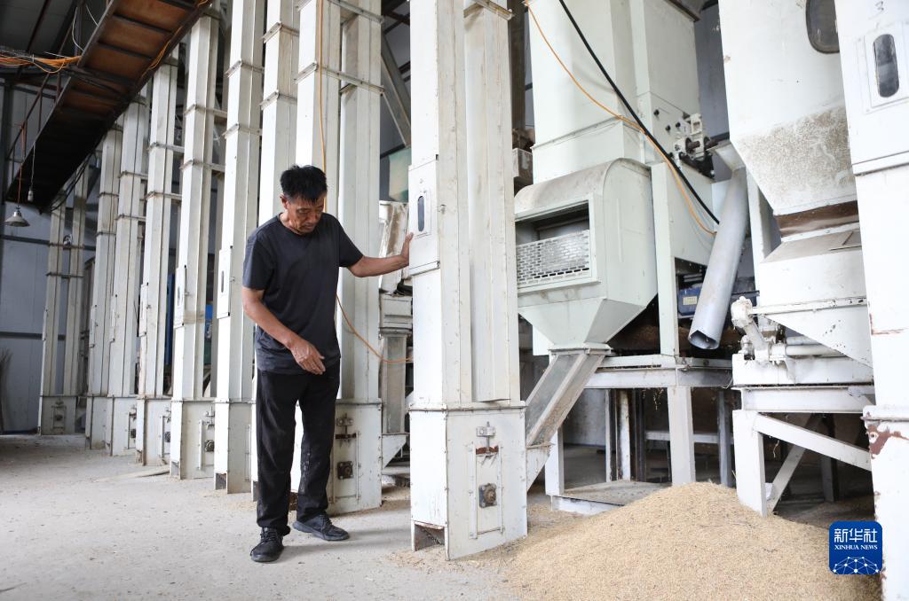 7月6日,于會懷在稻米加工廠內檢查設備。新華社記者 王乙杰 攝