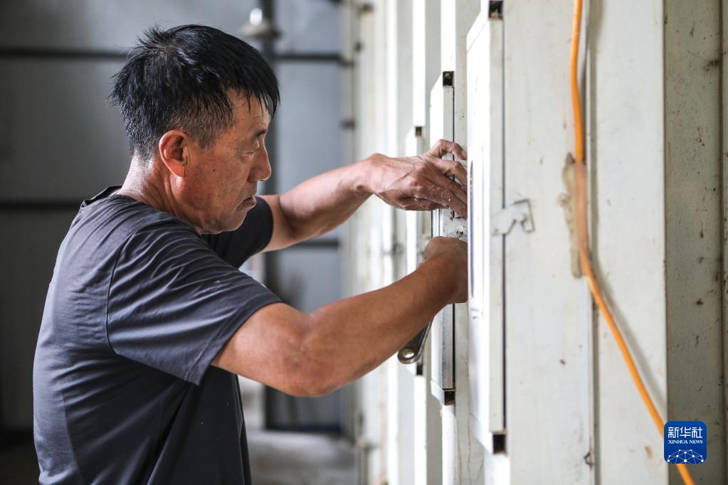 7月6日,于會懷在稻米加工廠內檢查設備。新華社記者 王乙杰 攝