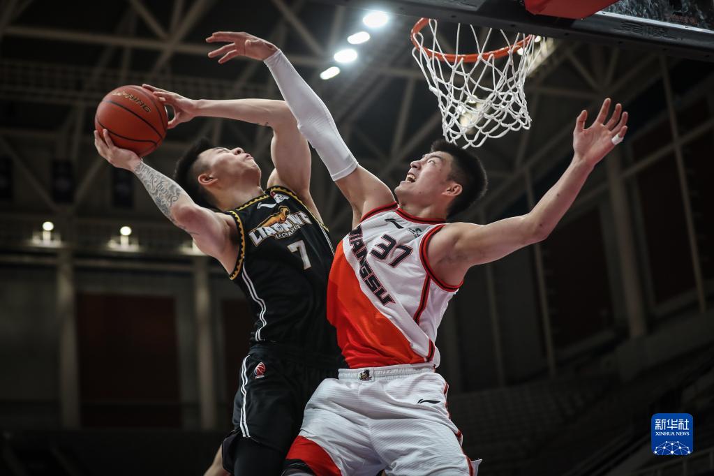 3月20日,遼寧隊球員張鎮麟(左)在比賽中。新華社記者潘昱龍攝