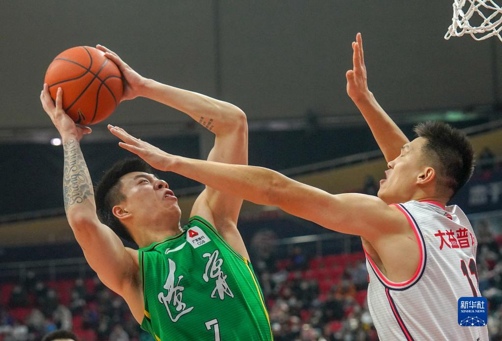 1月13日,遼寧隊球員張鎮麟(左)在比賽中投籃。新華社記者張楠攝
