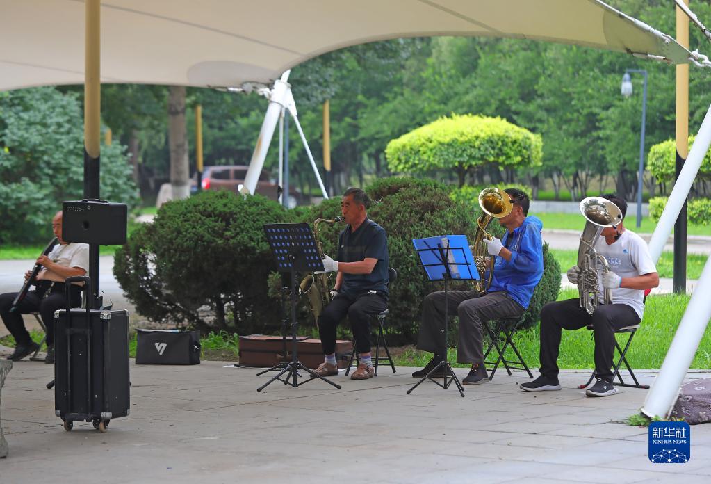 7月5日,市民在細河U谷公園內演奏樂器。新華社記者 楊青 攝