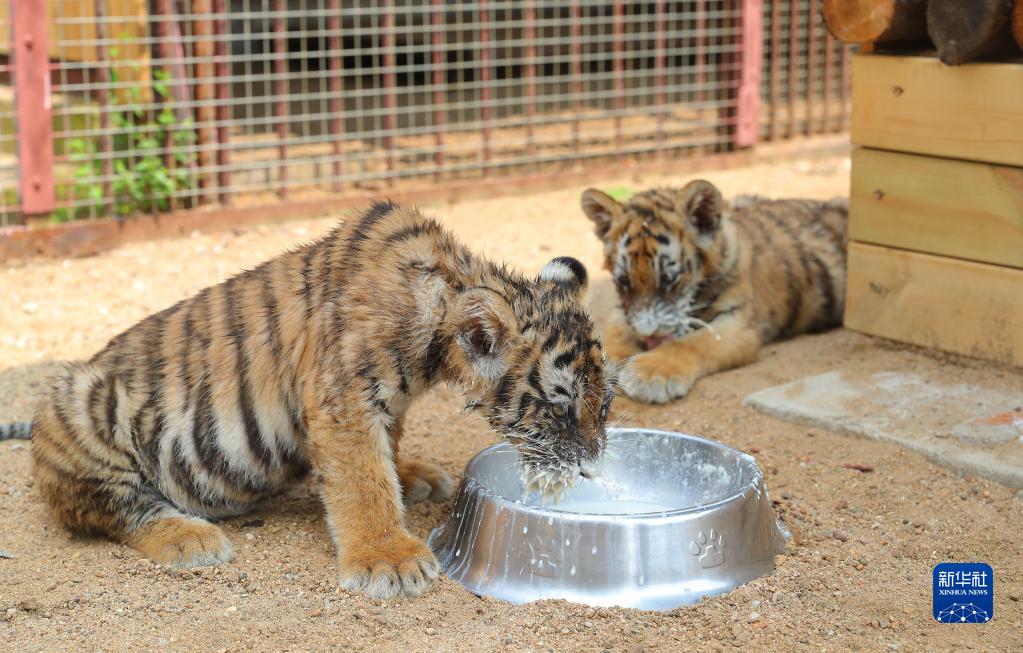 兩只小東北虎目前已經在動物園小動物區和游客見面。