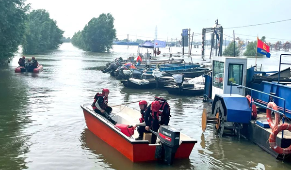同時,派遣45名消防救援人員、6輛消防車、7艘消防艇,聯合公安部門,在繞陽河河堤險情處前置備勤,保障當地群眾生命健康安全。