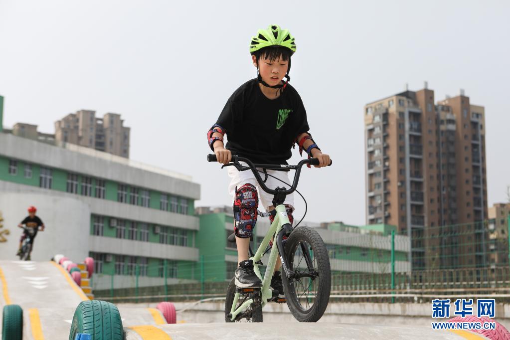 8月4日,在遼寧省沈陽市渾南區第九小學,參加暑期托管班的學生練習自行車。新華社記者 王乙杰 攝