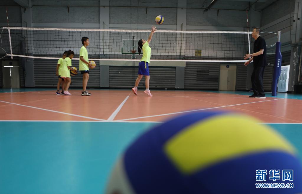 8月5日,在遼寧省沈陽市沈陽體育學院開展的暑期夏令營,小朋友們在練習排球。新華社記者 王乙杰 攝