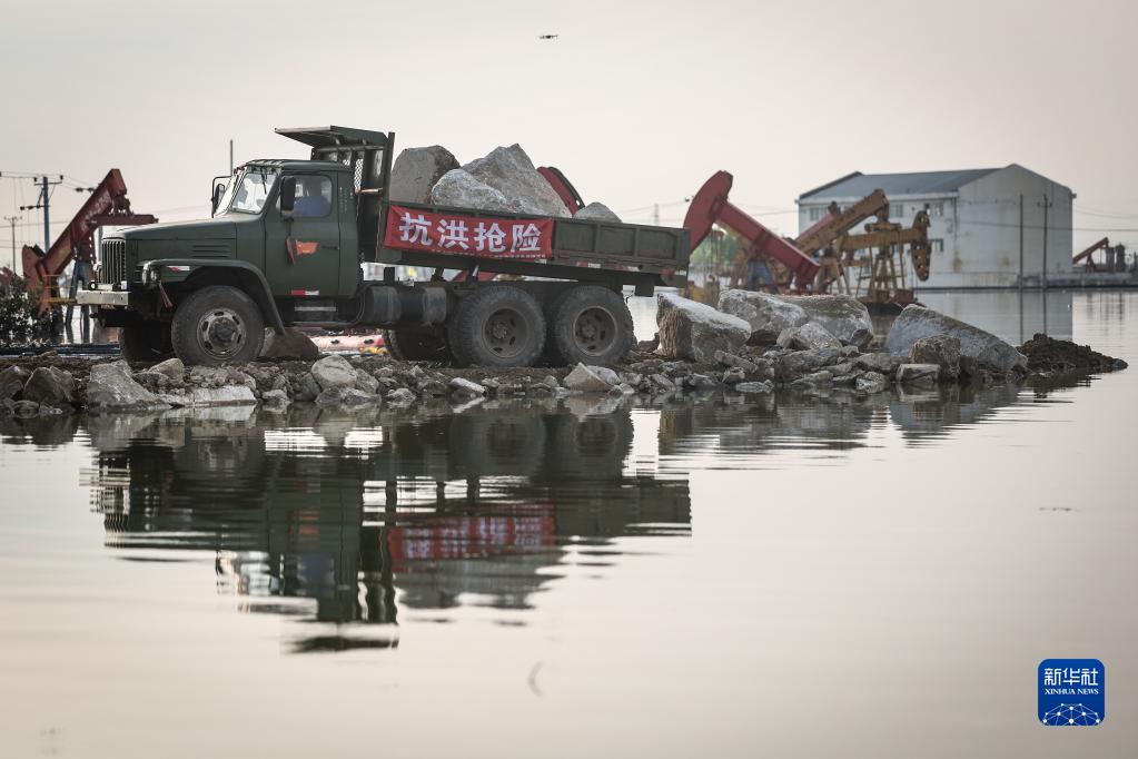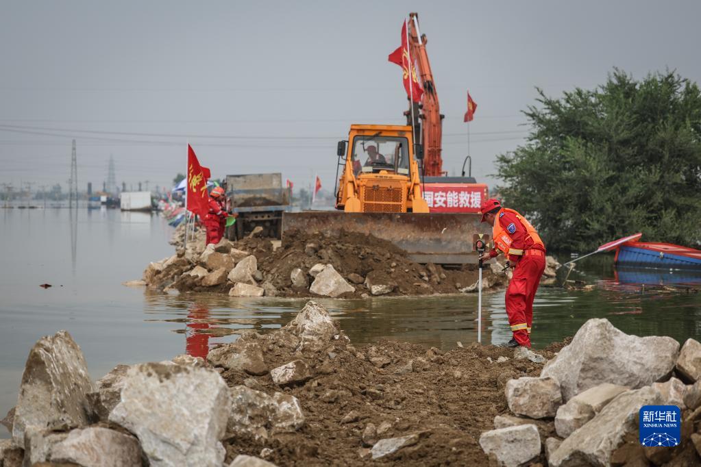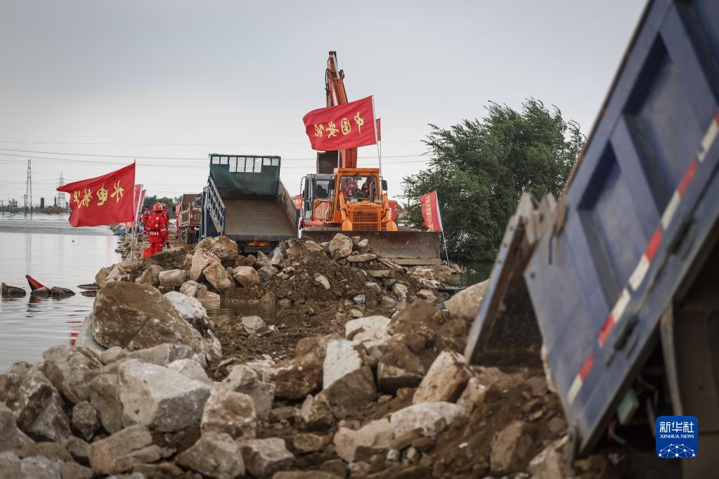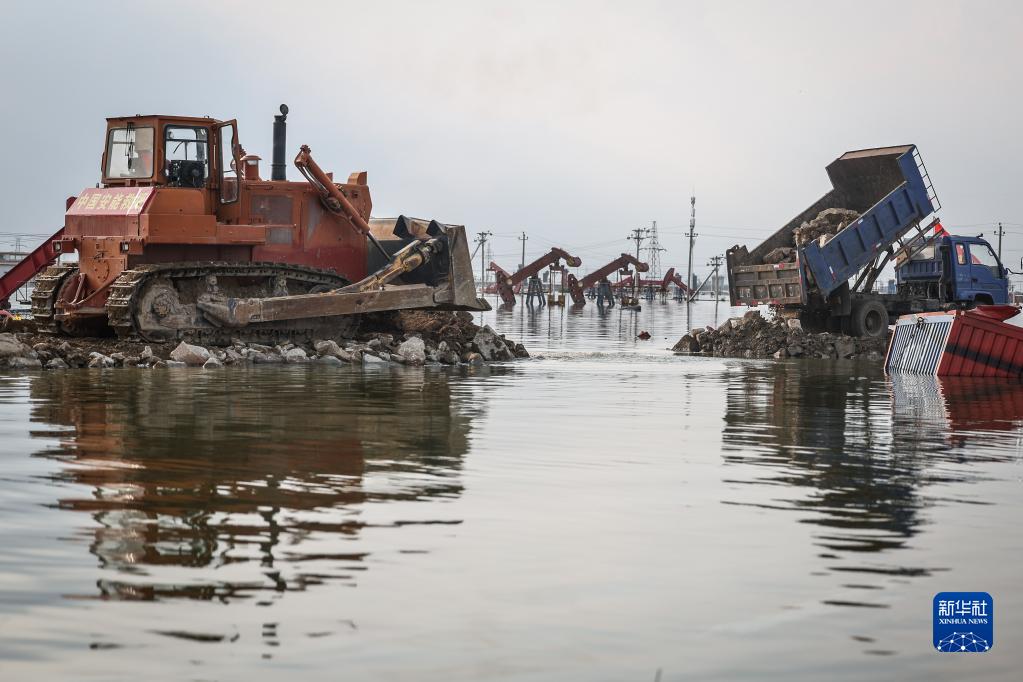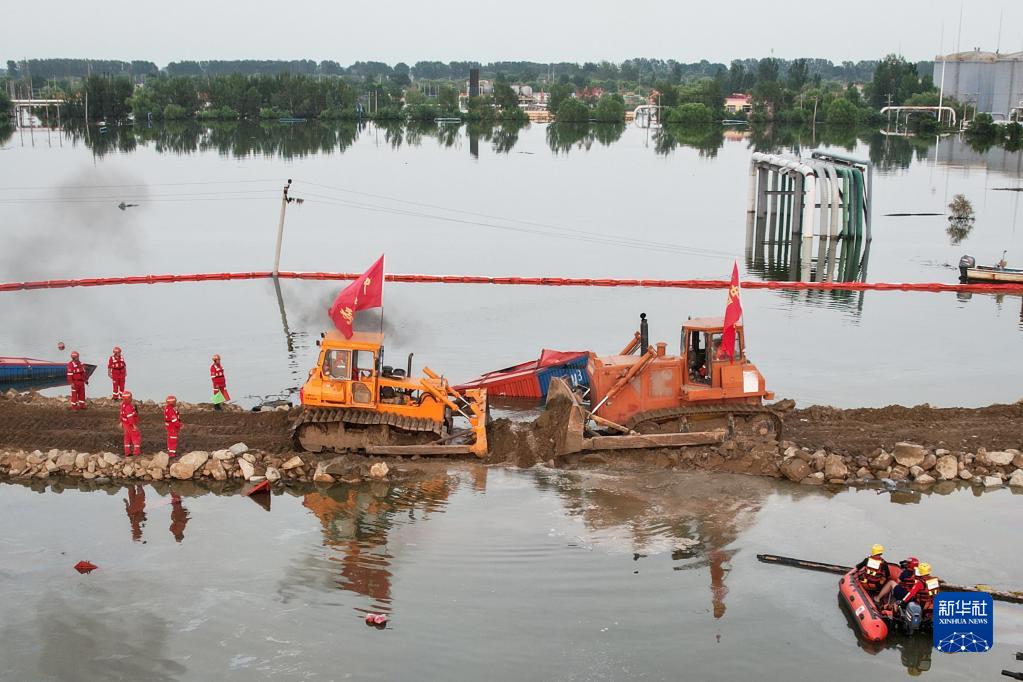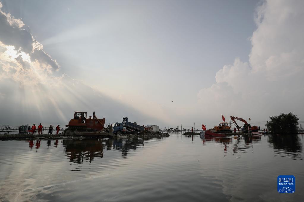 8月6日,搶險人員在潰口處進行封堵作業。新華社記者 潘昱龍 攝