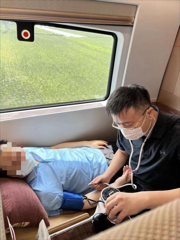 經過仔細檢查,唐熠達判斷此前該旅客服用的藥物并不對癥,第一時間將自己攜帶的另一種降壓藥物讓旅客服下,并陪同他一起搭乘高鐵。在高鐵上,唐熠達對旅客進行監護照顧,使其血壓逐步降至140/90mmHg。抵京后,唐熠達又對接醫院,使旅客順利住院治療。目前,該旅客病情已經逐漸平穩,轉危為安。