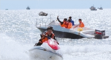 夏日炎炎,海水水質較好、適宜游泳的葫蘆島幾大海濱浴場人頭攢動,大家或下海游泳,或海上沖浪,盡享美好時光。楊兵 攝