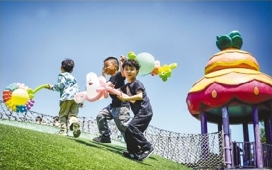 在最受孩子們歡迎的葫蘆古鎮童話王國兒童樂園里,有益智成長、探奇體驗、親近自然、嬉水樂園等16個主題游樂項目。楊兵 攝