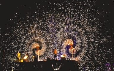 一勺勺滾燙的鐵水在演出人員的擊打下,化作漫天“鐵花雨”,在夜空中綻放,似漫天繁星,若火樹銀花,游客的歡呼聲不絕于耳。打鐵花,是國家級非物質文化遺產,至今已有千余年歷史。這是葫蘆古鎮夜場新引進的旅游項目。