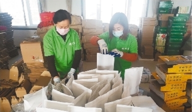 越來越多的營口農民開始利用電商渠道售賣山貨。圖為菲田農場的員工在打包秋木耳等當地特產,為網絡銷售做準備。記者 徐鑫 攝