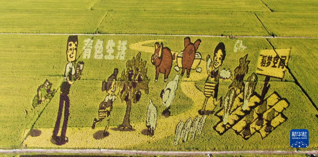 這是9月1日在“稻夢空間”景區拍攝的稻田畫(無人機照片)。