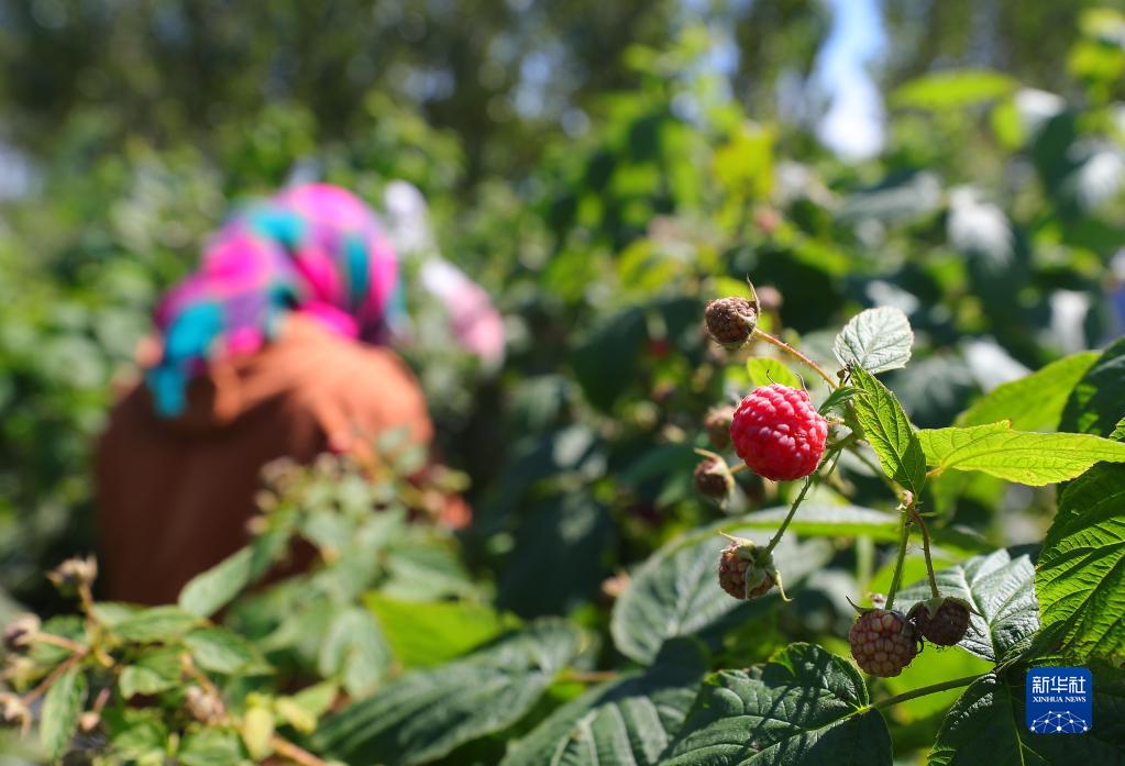9月6日,在法庫縣登仕堡子鎮西登仕堡子村樹莓種植基地,農民在采摘樹莓。新華社記者 楊青 攝