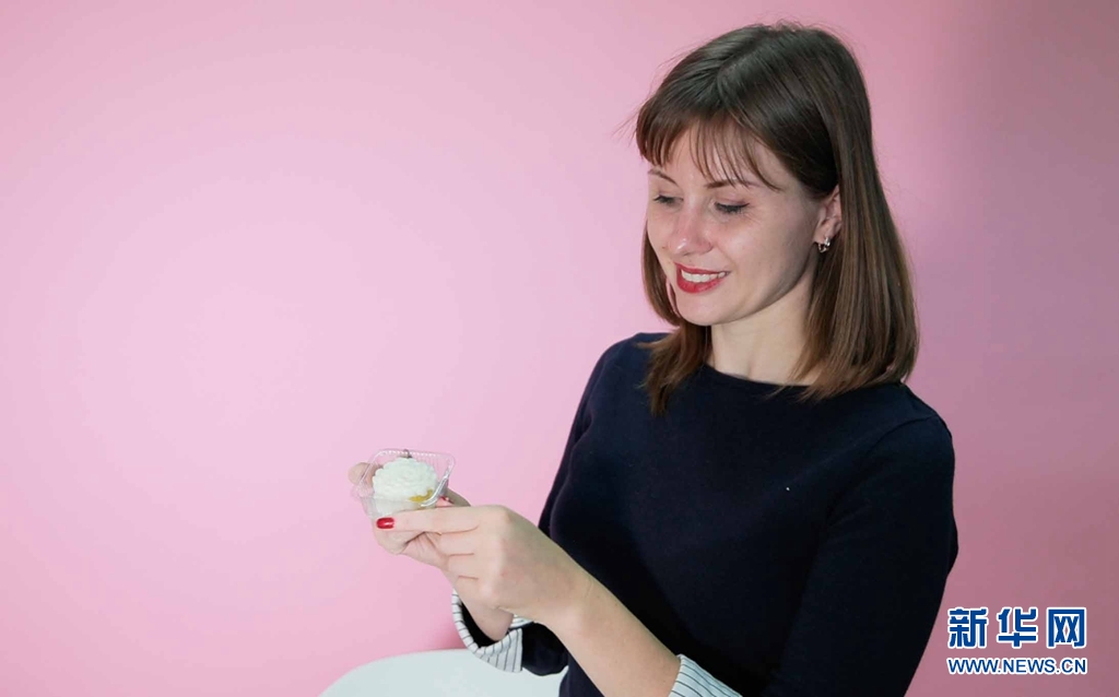 娜斯佳展示自己制作的月餅。新華網 夏銘陽 攝