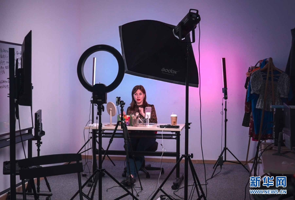 娜斯佳在直播間進行直播。新華網 夏銘陽 攝