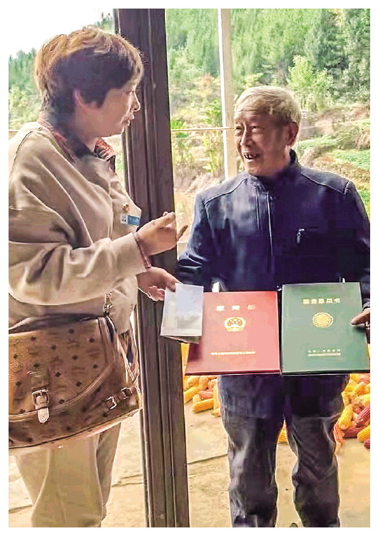 2019年,王春婕(左)到湖北省利川市龍興村冉方章家中征集冉緒碧烈士遺物。資料照片