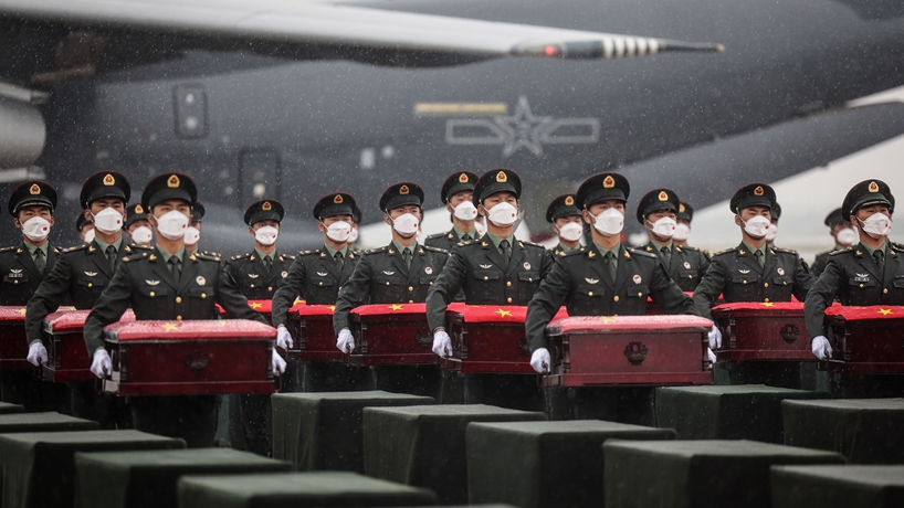9月16日,沈陽下起中雨。楊野戰眼眶濕潤,目不轉睛地看著電視上第九批在韓中國人民志愿軍烈士遺骸回國的直播?!懊磕甑闹辈ノ叶紩?,今年更多了一份希望?!睏钜皯鹫f。