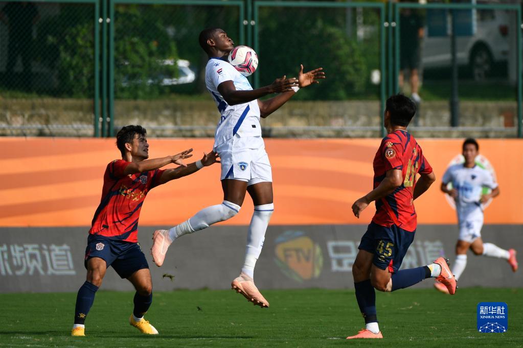 9月16日,南京城市隊球員薩比爾(左二)在比賽中停球。
