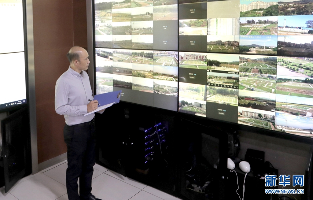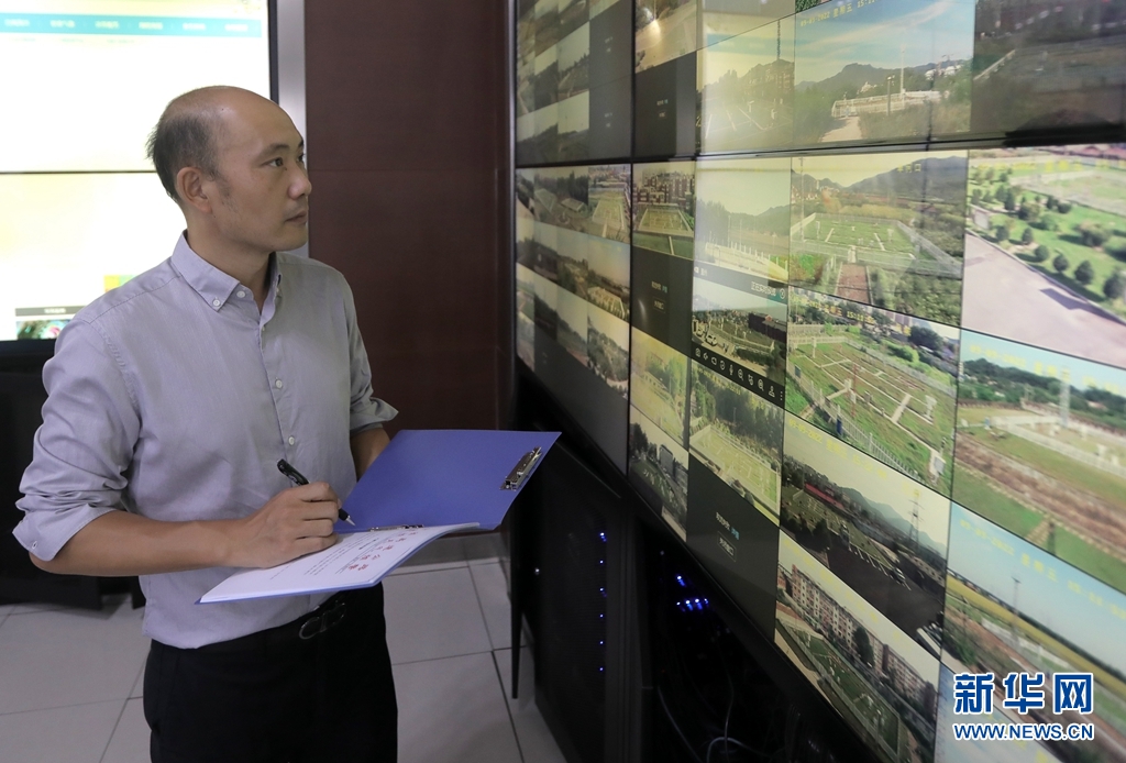 陳宇從預警中心的大屏幕上觀察各氣象觀測站的運行情況。新華網 夏銘陽 攝