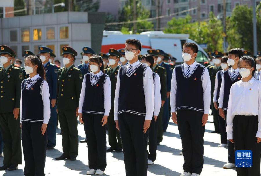 9月18日,青年學生參加勿忘九一八撞鐘鳴警儀式。新華社記者 楊青 攝