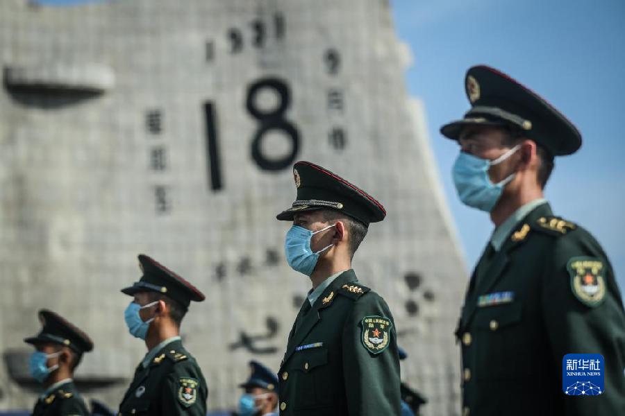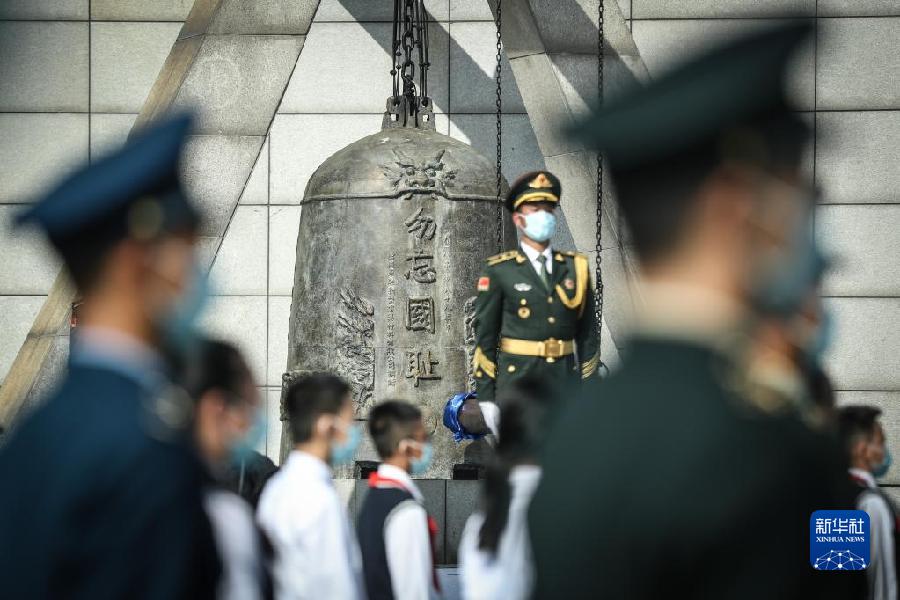 這是2021年9月18日拍攝的勿忘九一八撞鐘鳴警儀式現場。新華社記者 潘昱龍 攝